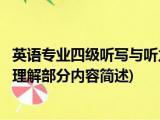 大家好,今天小方来说说一篇关于英语专业四级听写与听力理解,关于英语专业四级听写与听力理解部分内容简述的文章,那么现在就为大家来简单 浏览全文>>