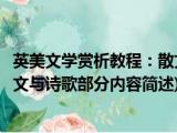 大家好,今天小方来说说一篇关于英美文学赏析教程:散文与诗歌,关于英美文学赏析教程:散文与诗歌部分内容简述的文章,那么现在就为大家来 浏览全文>>