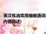 大家好,今天小方来说说一篇关于英汉炼油常用缩略语词典,关于英汉炼油常用缩略语词典部分内容简述的文章,那么现在就为大家来简单介绍下, 浏览全文>>