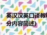 大家好,今天小方来说说一篇关于英汉汉英口译教程,关于英汉汉英口译教程部分内容简述的文章,那么现在就为大家来简单介绍下,希望对各位小 浏览全文>>