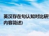 大家好,今天小方来说说一篇关于英汉存在句认知对比研究,关于英汉存在句认知对比研究部分内容简述的文章,那么现在就为大家来简单介绍下, 浏览全文>>