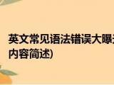 大家好,今天小方来说说一篇关于英文常见语法错误大曝光,关于英文常见语法错误大曝光部分内容简述的文章,那么现在就为大家来简单介绍下, 浏览全文>>