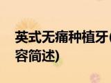 大家好,今天小方来说说一篇关于英式无痛种植牙,关于英式无痛种植牙部分内容简述的文章,那么现在就为大家来简单介绍下,希望对各位小伙伴 浏览全文>>
