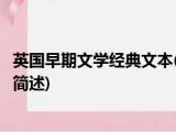 大家好,今天小方来说说一篇关于英国早期文学经典文本,关于英国早期文学经典文本部分内容简述的文章,那么现在就为大家来简单介绍下,希望 浏览全文>>
