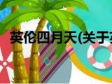 大家好,今天小方来说说一篇关于英伦四月天,关于英伦四月天部分内容简述的文章,那么现在就为大家来简单介绍下,希望对各位小伙伴们有所帮 浏览全文>>