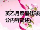 大家好,今天小方来说说一篇关于英乙月度最佳球员,关于英乙月度最佳球员部分内容简述的文章,那么现在就为大家来简单介绍下,希望对各位小 浏览全文>>