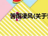 大家好,今天小方来说说一篇关于苦雨凄风,关于苦雨凄风部分内容简述的文章,那么现在就为大家来简单介绍下,希望对各位小伙伴们有所帮助。 浏览全文>>