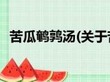 大家好,今天小方来说说一篇关于苦瓜鹌鹑汤,关于苦瓜鹌鹑汤部分内容简述的文章,那么现在就为大家来简单介绍下,希望对各位小伙伴们有所帮 浏览全文>>