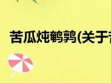 大家好,今天小方来说说一篇关于苦瓜炖鹌鹑,关于苦瓜炖鹌鹑部分内容简述的文章,那么现在就为大家来简单介绍下,希望对各位小伙伴们有所帮 浏览全文>>