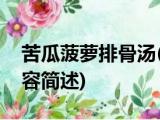 大家好,今天小方来说说一篇关于苦瓜菠萝排骨汤,关于苦瓜菠萝排骨汤部分内容简述的文章,那么现在就为大家来简单介绍下,希望对各位小伙伴 浏览全文>>