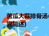 大家好,今天小方来说说一篇关于苦瓜大蒜排骨汤,关于苦瓜大蒜排骨汤部分内容简述的文章,那么现在就为大家来简单介绍下,希望对各位小伙伴 浏览全文>>