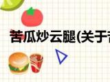 大家好,今天小方来说说一篇关于苦瓜炒云腿,关于苦瓜炒云腿部分内容简述的文章,那么现在就为大家来简单介绍下,希望对各位小伙伴们有所帮 浏览全文>>