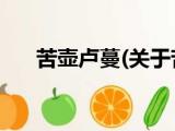 大家好,今天小方来说说一篇关于苦壶卢蔓,关于苦壶卢蔓部分内容简述的文章,那么现在就为大家来简单介绍下,希望对各位小伙伴们有所帮助。 浏览全文>>