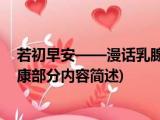 大家好,今天小方来说说一篇关于若初早安——漫话乳腺健康,关于若初早安——漫话乳腺健康部分内容简述的文章,那么现在就为大家来简单介绍 浏览全文>>