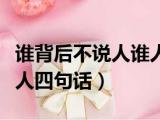 大家好,小活来为大家解答以上的问题。谁背后不说人谁人背后不被说,谁人背后不说人四句话这个很多人还不知道,现在让我们一起来看看吧!1、 浏览全文>>