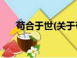 大家好,今天小方来说说一篇关于苟合于世,关于苟合于世部分内容简述的文章,那么现在就为大家来简单介绍下,希望对各位小伙伴们有所帮助。 浏览全文>>