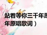大家好,小活来为大家解答以上的问题。站着等你三千年原唱歌词教唱,站着等你三千年原唱歌词这个很多人还不知道,现在让我们一起来看看吧!1 浏览全文>>