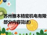 大家好,今天小方来说说一篇关于苏州雅本精密机电有限公司,关于苏州雅本精密机电有限公司部分内容简述的文章,那么现在就为大家来简单介绍 浏览全文>>