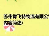 大家好,今天小方来说说一篇关于苏州肯飞特物流有限公司,关于苏州肯飞特物流有限公司部分内容简述的文章,那么现在就为大家来简单介绍下, 浏览全文>>