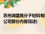 大家好,今天小方来说说一篇关于苏州润盛高分子材料有限公司,关于苏州润盛高分子材料有限公司部分内容简述的文章,那么现在就为大家来简单 浏览全文>>