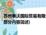 大家好,今天小方来说说一篇关于苏州泰沃国际贸易有限公司,关于苏州泰沃国际贸易有限公司部分内容简述的文章,那么现在就为大家来简单介绍 浏览全文>>