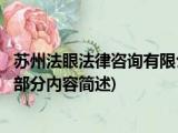 大家好,今天小方来说说一篇关于苏州法眼法律咨询有限公司,关于苏州法眼法律咨询有限公司部分内容简述的文章,那么现在就为大家来简单介绍 浏览全文>>