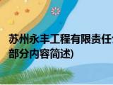 大家好,今天小方来说说一篇关于苏州永丰工程有限责任公司,关于苏州永丰工程有限责任公司部分内容简述的文章,那么现在就为大家来简单介绍 浏览全文>>