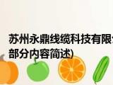 大家好,今天小方来说说一篇关于苏州永鼎线缆科技有限公司,关于苏州永鼎线缆科技有限公司部分内容简述的文章,那么现在就为大家来简单介绍 浏览全文>>
