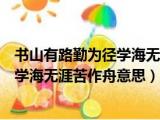 大家好,小活来为大家解答以上的问题。书山有路勤为径学海无涯苦作舟类似语录,书山有路勤为径学海无涯苦作舟意思这个很多人还不知道,现在让 浏览全文>>