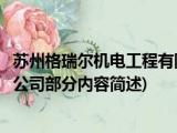 大家好,今天小方来说说一篇关于苏州格瑞尔机电工程有限公司,关于苏州格瑞尔机电工程有限公司部分内容简述的文章,那么现在就为大家来简单 浏览全文>>