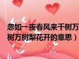 大家好,小活来为大家解答以上的问题。忽如一夜春风来千树万树梨花开的扩写,忽如一夜春风来千树万树梨花开的意思这个很多人还不知道,现在让 浏览全文>>