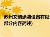 大家好,今天小方来说说一篇关于苏州文韵涂装设备有限公司,关于苏州文韵涂装设备有限公司部分内容简述的文章,那么现在就为大家来简单介绍 浏览全文>>