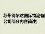 大家好,今天小方来说说一篇关于苏州得尔达国际物流有限公司,关于苏州得尔达国际物流有限公司部分内容简述的文章,那么现在就为大家来简单 浏览全文>>