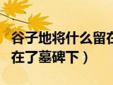 大家好,小活来为大家解答以上的问题。谷子地将什么留在了墓地旁,谷子地将什么留在了墓碑下这个很多人还不知道,现在让我们一起来看看吧!1 浏览全文>>