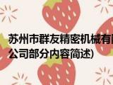 大家好,今天小方来说说一篇关于苏州市群友精密机械有限公司,关于苏州市群友精密机械有限公司部分内容简述的文章,那么现在就为大家来简单 浏览全文>>