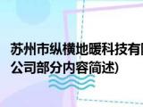 大家好,今天小方来说说一篇关于苏州市纵横地暖科技有限公司,关于苏州市纵横地暖科技有限公司部分内容简述的文章,那么现在就为大家来简单 浏览全文>>