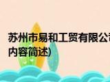 大家好,今天小方来说说一篇关于苏州市易和工贸有限公司,关于苏州市易和工贸有限公司部分内容简述的文章,那么现在就为大家来简单介绍下, 浏览全文>>