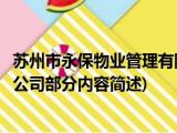 大家好,今天小方来说说一篇关于苏州市永保物业管理有限公司,关于苏州市永保物业管理有限公司部分内容简述的文章,那么现在就为大家来简单 浏览全文>>