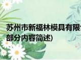 大家好,今天小方来说说一篇关于苏州市新福林模具有限公司,关于苏州市新福林模具有限公司部分内容简述的文章,那么现在就为大家来简单介绍 浏览全文>>