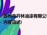 大家好,今天小方来说说一篇关于苏州市开林油漆有限公司,关于苏州市开林油漆有限公司部分内容简述的文章,那么现在就为大家来简单介绍下, 浏览全文>>