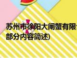 大家好,今天小方来说说一篇关于苏州市徐阳大闸蟹有限公司,关于苏州市徐阳大闸蟹有限公司部分内容简述的文章,那么现在就为大家来简单介绍 浏览全文>>