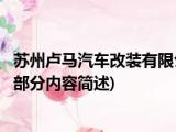 大家好,今天小方来说说一篇关于苏州卢马汽车改装有限公司,关于苏州卢马汽车改装有限公司部分内容简述的文章,那么现在就为大家来简单介绍 浏览全文>>