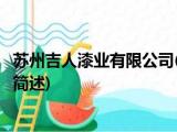 大家好,今天小方来说说一篇关于苏州吉人漆业有限公司,关于苏州吉人漆业有限公司部分内容简述的文章,那么现在就为大家来简单介绍下,希望 浏览全文>>