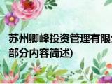 大家好,今天小方来说说一篇关于苏州卿峰投资管理有限公司,关于苏州卿峰投资管理有限公司部分内容简述的文章,那么现在就为大家来简单介绍 浏览全文>>