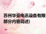 大家好,今天小方来说说一篇关于苏州华亚电讯设备有限公司,关于苏州华亚电讯设备有限公司部分内容简述的文章,那么现在就为大家来简单介绍 浏览全文>>