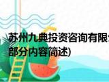 大家好,今天小方来说说一篇关于苏州九典投资咨询有限公司,关于苏州九典投资咨询有限公司部分内容简述的文章,那么现在就为大家来简单介绍 浏览全文>>