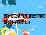 大家好,今天小方来说说一篇关于苏州东泽汽车销售有限公司,关于苏州东泽汽车销售有限公司部分内容简述的文章,那么现在就为大家来简单介绍 浏览全文>>