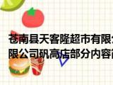 大家好,今天小方来说说一篇关于苍南县天客隆超市有限公司矾高店,关于苍南县天客隆超市有限公司矾高店部分内容简述的文章,那么现在就为大 浏览全文>>