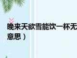 大家好,小活来为大家解答以上的问题。晚来天欲雪能饮一杯无什么梗,晚来天欲雪能饮一杯无什么意思这个很多人还不知道,现在让我们一起来看看 浏览全文>>
