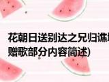 大家好,今天小方来说说一篇关于花朝日送别达之兄归谯城赠歌,关于花朝日送别达之兄归谯城赠歌部分内容简述的文章,那么现在就为大家来简单 浏览全文>>